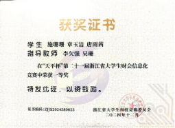 学生参加“天平杯”浙江省大学生财会信息化竞赛获一等奖