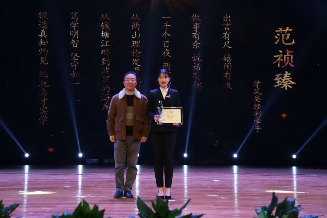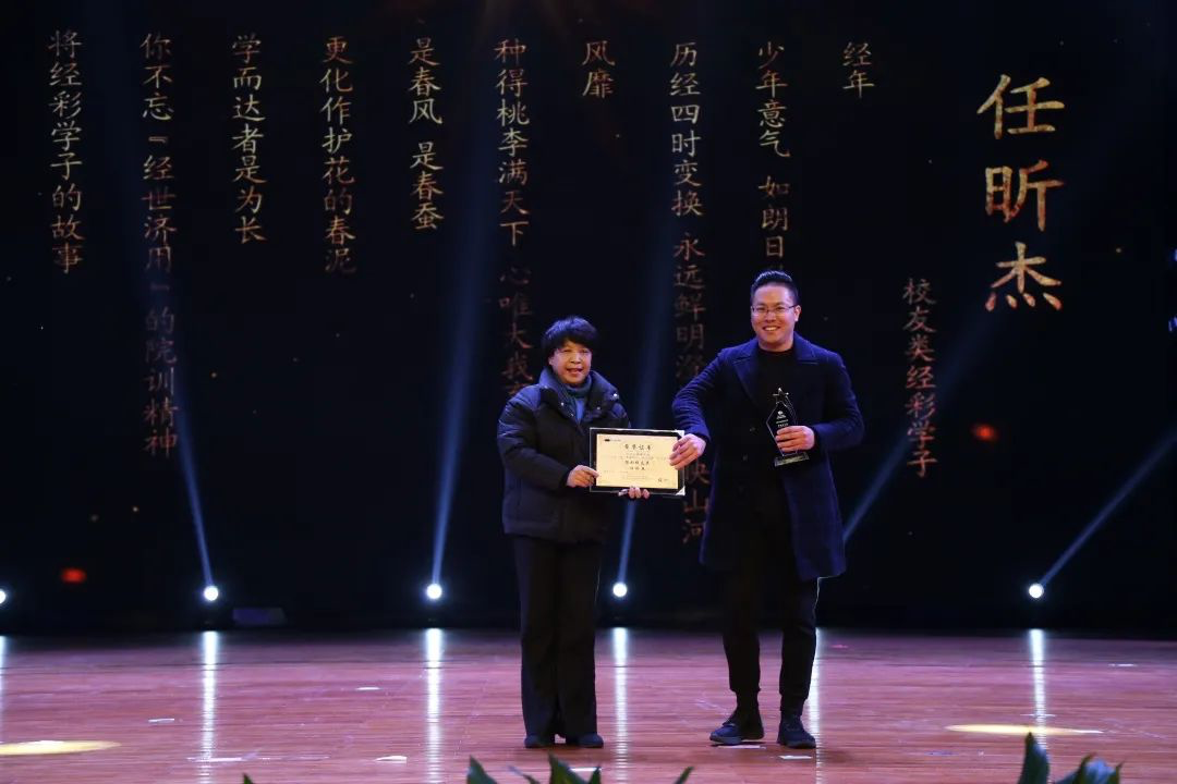 此次典礼分为破晓·迎旭,暖阳•沐春风,观霞•立潮头,摘星•烁华灯,指月•遂雅志五个篇章,对学风类、奉献类、文体类、创新类和校友类“经彩学子”进行了表彰,他们分别是财务管理174范祯臻、市场营销172施颖俐、信息管理与信息系统171李加慧、市场营销182王若男、信息管理与信息系统171何子康、国际经济与贸易182郑月、经济与管理学院网球队、信息管理与信息系统181陈燚锋、经济学(中美)171贝柯谕、2009届信息管理与信息系统任昕杰校友副校长万健及出席典礼的嘉宾分别为获奖者颁奖。