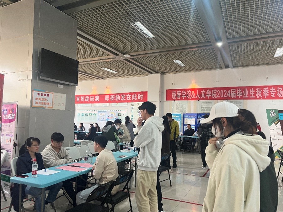 为深入学习贯彻党的二十大精神,全面落实党中央、国务院对高校毕业生就业创业工作的决策部署,做好2024届毕业生就业服务工作,搭建用人单位和毕业生沟通桥梁。11月23日,经管学院联合人文学院在创业广场共同举办了2024届毕业生秋季校园专场招聘会。