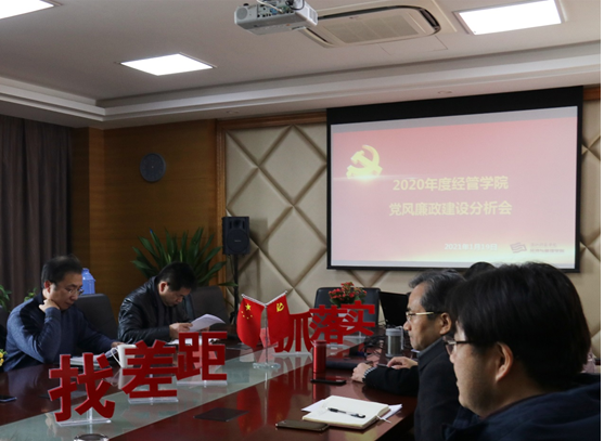 经管学院于2021年1月19日在B3-314召开党风廉政建设分析会和民主生活会,副校长万健,校纪委委员傅晓炜,纪检监察室徐娟,学院党委书记兼院长黎东升、副书记王杨、副院长刘洪民、副院长吕海萍、副院长郭俊辉及学院内设机构负责人参加。