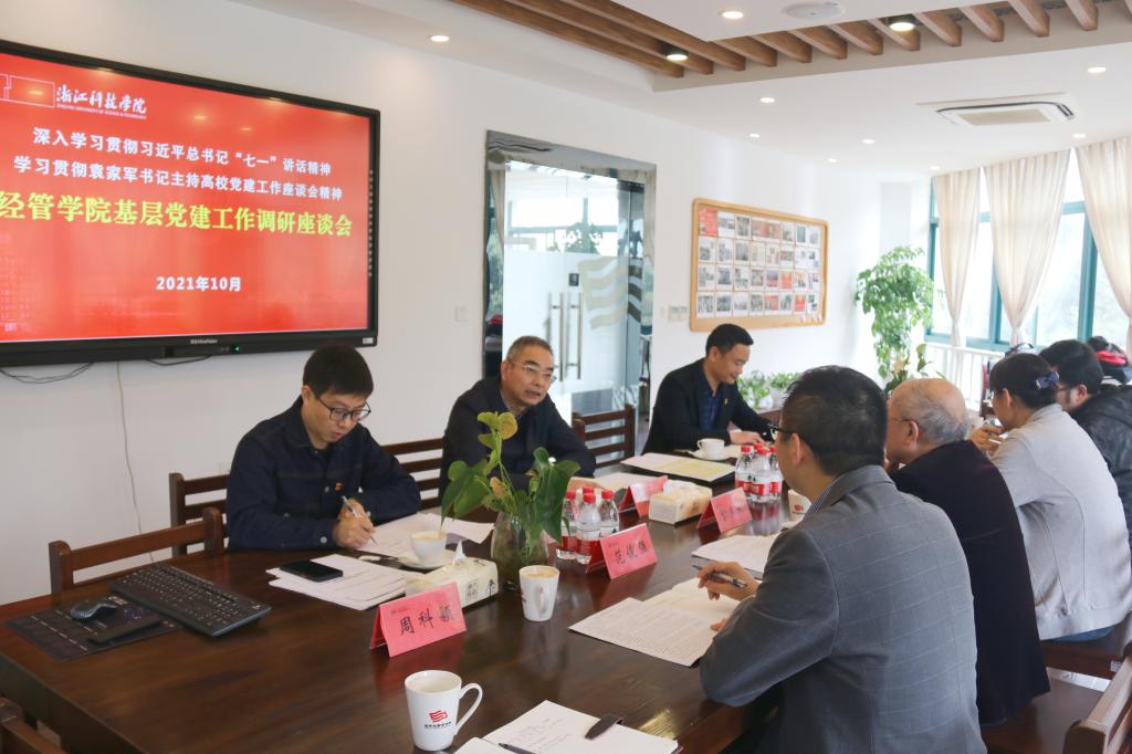 党建动态 首页 党建工作 党建动态 正文 校党委书记龚建立到我院调研指导基层党建工作 10月24日校党委书记龚建立到我院开展基层党建工作专题调研,学院党委书记黎东升、党委副书记范俊强以及支部书记代表参加会议,学校办公室负责人陪同调研。 黎东升汇报了学院党建工作情况,范俊强汇报了学生思想政治教育、学生成长成才服务以及毕业生就业服务等情况,组织员和学生支部书记等重点围绕基层党建工作中存在的问题和难点进行工作交流。 在听取汇报后,龚建立强调,经管学院要深入学习领会、贯彻落实好习近平总书记重要讲话和省高校党建工作座谈会精神,并对学院下一步工作提出三点要求:一是利用好周四下午时间,切实组织教职工深入开展政治理论和业务学习研讨,不断凝心聚力;二是持续推进学科专业建设,不断提升学院内涵发展能力;三是利用好学校岗位聘用改革契机,采取有效措施,激励广大教师担当好为党育人、为国育才的重任,为攻坚更名大学贡献经管力量。