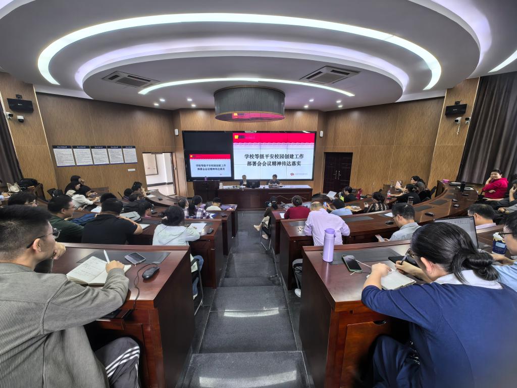党建动态 首页 党建工作 党建动态 正文 学院部署等级平安校园创建师德师风教育工作 为了深入学习贯彻习近平总书记在全国教育大会上的重要讲话精神,落实好学校等级平安校园创建,10月17日下午,学院召开全体大会,全面部署等级平安校园创建师德师风教育工作。会议由院长董颖主持,党政班子成员、全体教职工参加会议。 董颖首先传达了学校等级平安校园创建工作部署会议精神,并对照等级平安校园创建工作要求,仔细为老师们讲解工作中的注意事项。副院长吕海萍部署近期教学有关安排。 学院党委书记刘发明作“违反高校教师职业行为十项准则典型案例”讲解,进行师德警示教育,引导教师以案明纪,知准则、守底线,号召广大教师坚定理想信念、厚植爱国情怀、涵养高尚师德,为党育人、为国育才。 会议最后大家集中观看了电影《我爱我的老师》。