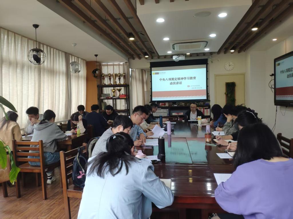 会上,学院党委副书记范俊强领学《中共中央八项规定》及其精神。