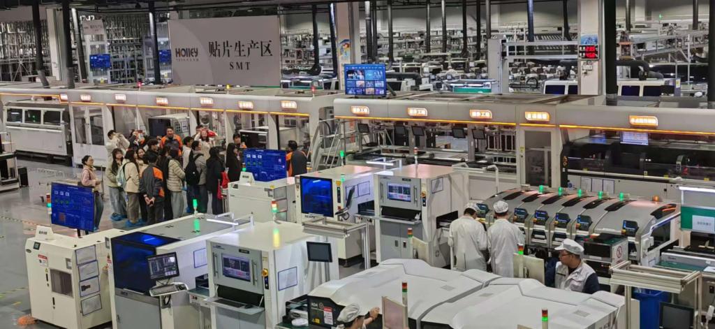 最后,参与本次活动的师生们参观了制造基地的数字化智能工厂,近距离地参观让师生们直观领略了智能制造的前沿成果,更搭建了理论与实践沟通的桥梁,打破了课堂知识与实际应用的壁垒,激发了学生们探索科技前沿、钻研专业知识的浓厚兴趣,也为教师将产业前沿动态融入教学提供了丰富的实践素材与鲜活案例,有助于推动理论教学与实践应用深度融合,从而更好地培养适应行业发展需求的高素质人才。