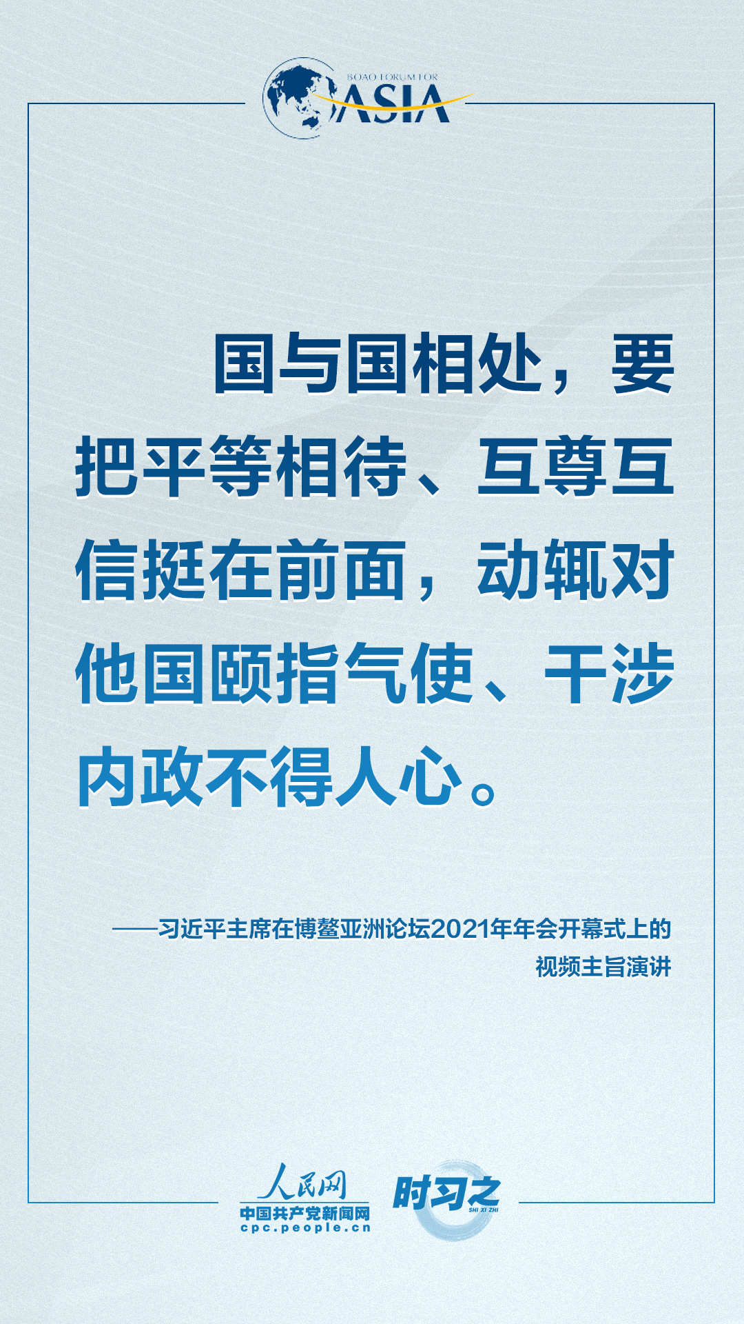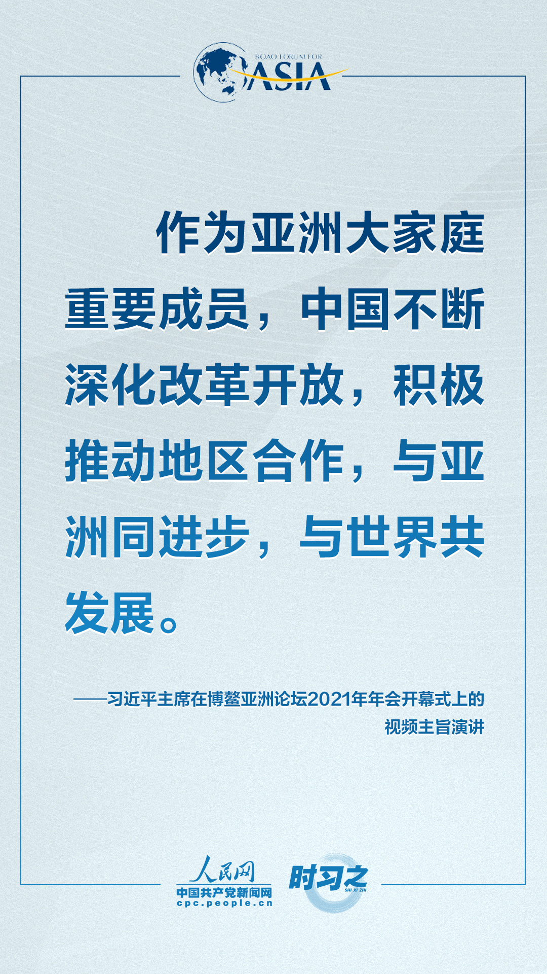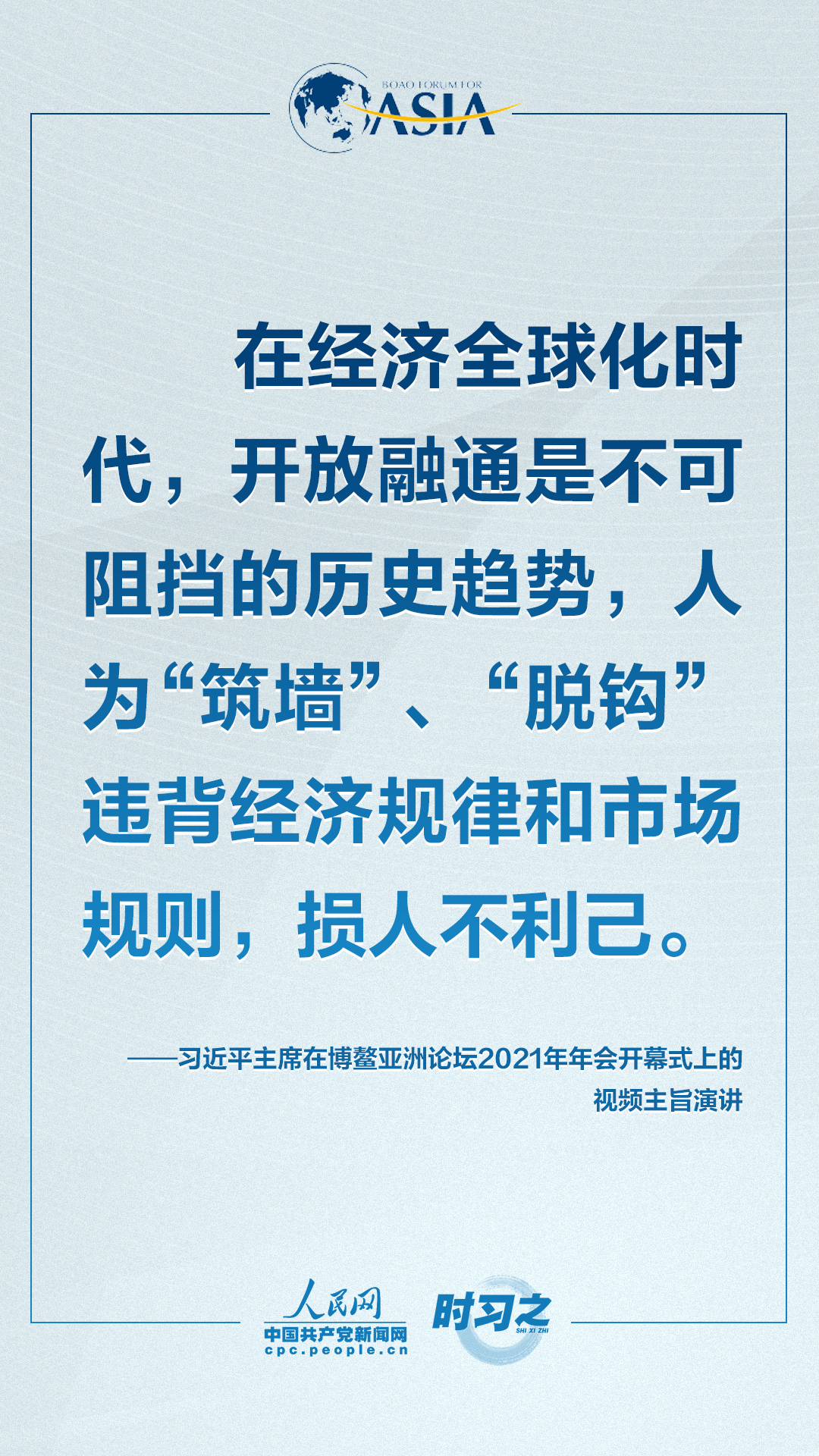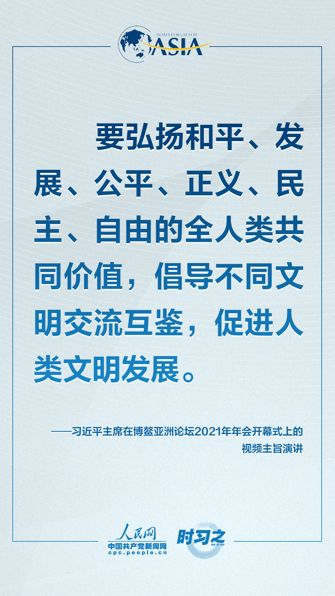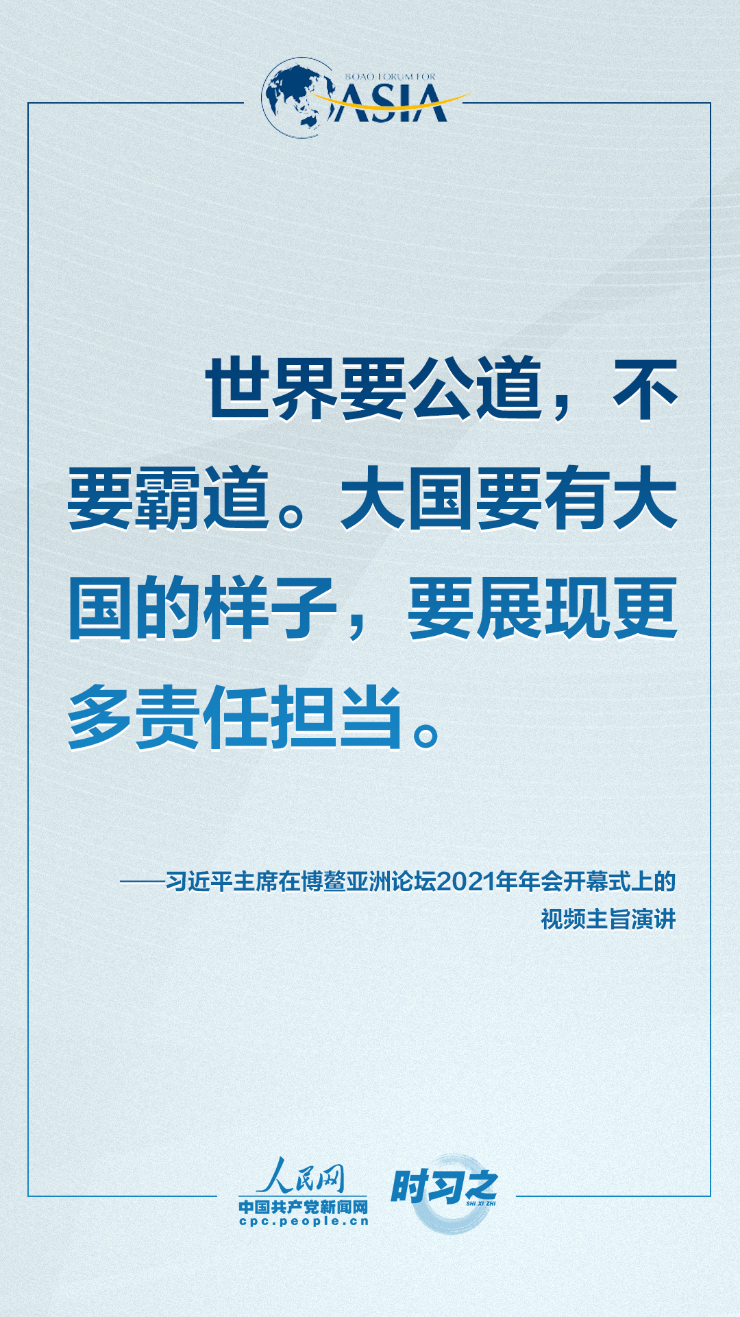 理论学习 首页 党建工作 理论学习 正文 共克时艰共创未来 习近平这样对世界说 4月20日上午,博鳌亚洲论坛2021年年会开幕式在海南博鳌举行,国家主席习近平以视频方式发表题为《同舟共济克时艰,命运与共创未来》的主旨演讲。面对“人类社会应该向何处去?我们应该为子孙后代创造一个什么样的未来?”的重大命题,习近平这样对世界说。