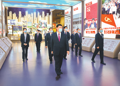 新近落成的中国共产党历史展览馆巍然矗立,气势恢宏。下午3时20分许,习近平等党和国家领导同志来到这里,步入展厅参观展览。展览以“不忘初心、牢记使命”为主题,精心设计了“建立中国共产党 夺取新民主主义革命伟大胜利”、“成立中华人民共和国 进行社会主义革命和建设”、“实行改革开放 开创和发展中国特色社会主义”、“推进中国特色社会主义进入新时代 全面建成小康社会 开启全面建设社会主义现代化国家新征程”4个部分,通过2600余幅图片、3500多件套文物实物,第一次全方位、全过程、全景式、史诗般展现中国共产党波澜壮阔的百年历程,浓墨重彩地反映党的不懈奋斗史、不怕牺牲史、理论探索史、为民造福史、自身建设史,使人们深刻认识到红色政权来之不易、新中国来之不易、中国特色社会主义来之不易,深刻认识到中国共产党为什么能、马克思主义为什么行、中国特色社会主义为什么好。