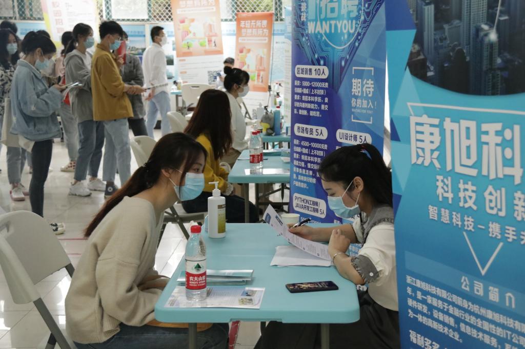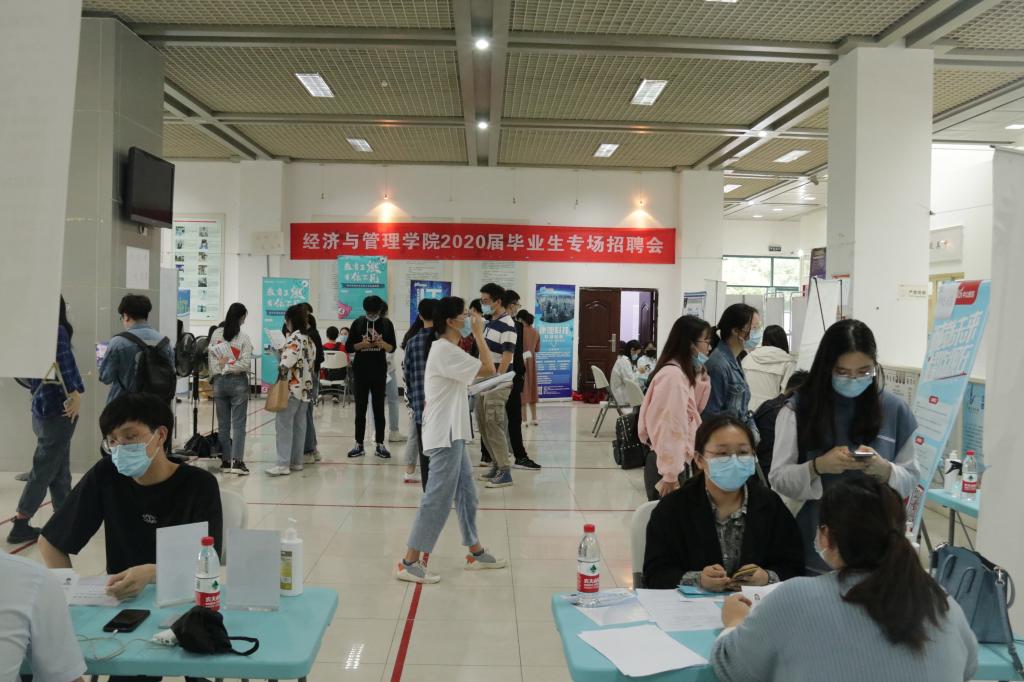 为了更好地服务毕业生就业工作,拓宽毕业生就业渠道, 5月26日下午,我院在校大学生创业广场举办经济与管理学院专场招聘会。为确保会场有序,避免人流密集,本次招聘会限制场内人数,邀请了近20家企业参加,包括宁波银行、万科物业、中公教育、我武生物、康旭科技等知名企业。