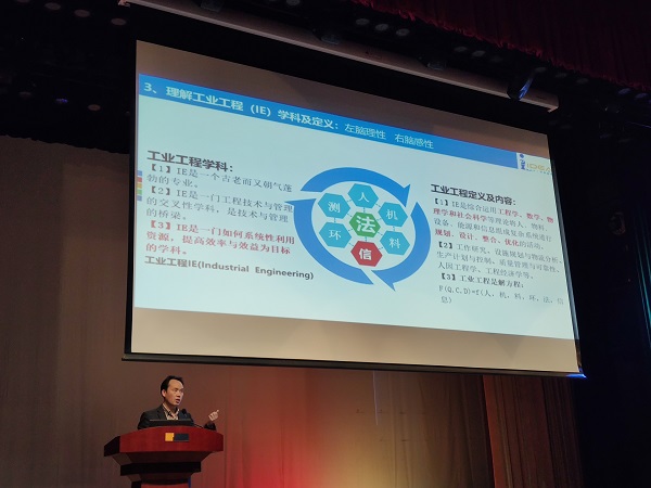 李晚华由IE理论的传授方式、IE技术应用、IE成果的提炼分享全面分析了工业工程教与学的现状,阐述了IE+ 交叉性、系统性、实践性、持续性、创新性、应变性的特点。他提出,“工业工程+企业导师制”的人才培养模式,能在素质结构,知识结构,能力结构对应用型人才培养提出新的要求,即“要形成纵向和横向建立解决复杂工程问题的意识”,他鼓励同学们要掌握专业知识,主动参加社会实践,灵活应用软件工具,以及养成求知心态。