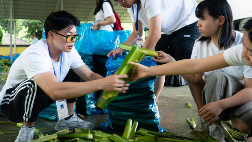 队员们边走访调研,边帮助村民做一些力所能及的事。恰逢当地茭白交易日,他们在茭白交易市场,帮助冷水雪茭种植户陈定英家分拣、装袋茭白。8名同学撸起袖子、弯下腰热火朝天地干起来,并不时和种植户交流,了解高山冷水雪茭目前的收益,以及在销售、推广、营销等方面的痛点难点。队员结合自身所学专业提出了“互联网+”平台打造超级单品的营销模式。