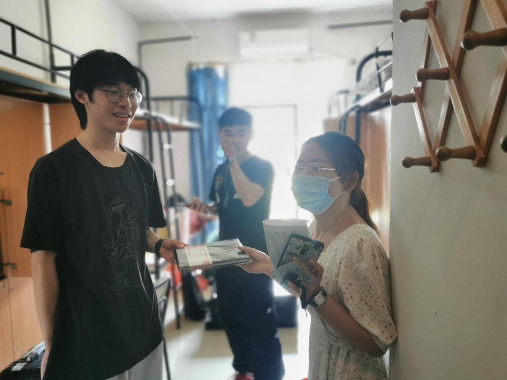 学院新闻 首页 学院新闻 正文 【小和山迎新】 进寝室 迎新生 搭建师生情 时间:2021-09-04 阅读次数: 开学季的小和山校区迎来了经济与管理学院的国际班新生。为促进初来乍到的学生快速适应新环境,学院副院长陈思静、副书记范俊强和班主任、辅导员共同走访学生宿舍,实际了解学生的到校情况、宿舍环境和生活状况。 9月4日,学院领导细心走访了每一间新生宿舍,与新生亲切交谈,解答新生的疑惑,给予细致的关怀与问候,并为开学生日的同学准备了惊喜。同时,老师也提醒学生在大学要养成良好的习惯,进行有效的自我安排。 迎新的一天即将结束,但经管学子的“经”彩才刚刚开始。在这里,他们将开始展现自己的风采,书写人生新篇章。