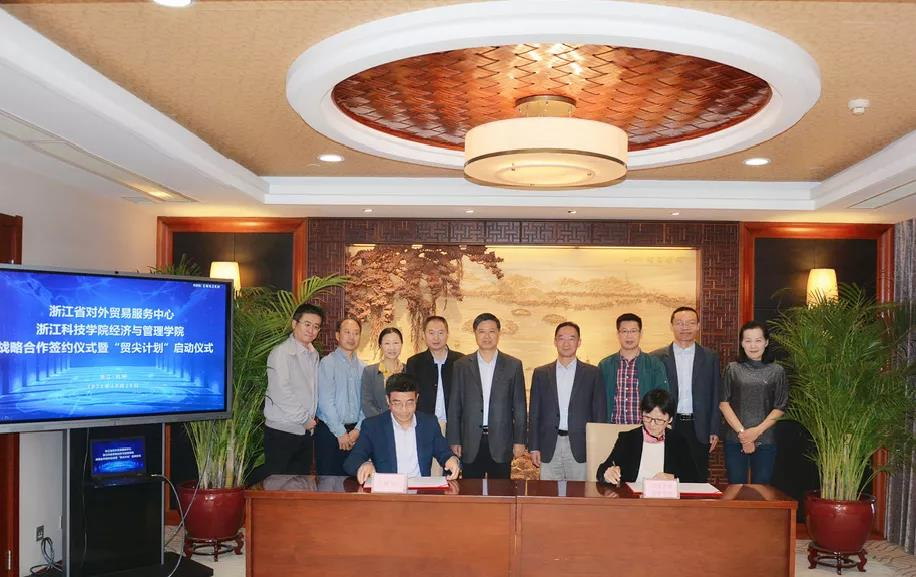 10月26日,浙江省对外贸易服务中心与学院战略合作签约仪式暨“贸尖计划”启动仪式举行,省商务厅副厅长韩杰、副校长冯军出席并见证签约。