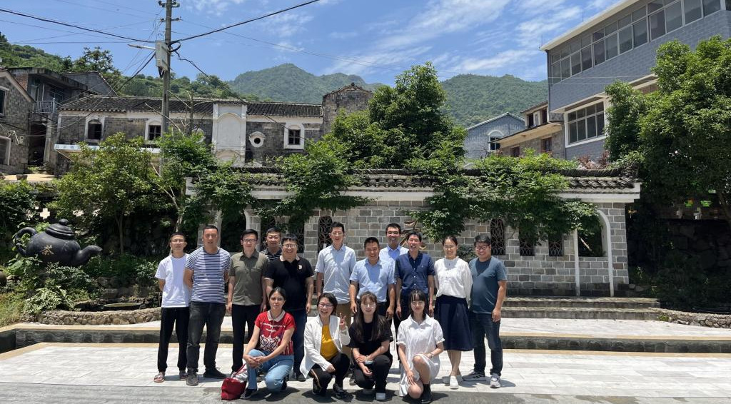 最后,调研团队来到了南屏乡上杨村调研。上杨村是浙江科技学院结对帮扶村,在当地各级政府的大力支持下,通过十余年的校地合作,八任农村指导员的辛勤汗水,大力发展当地特色产业,推广天台黄茶的种植,使得上杨村从一个人均耕地仅为0.3亩的小山村,变为如今茶叶种植面积400余亩的天台黄茶生产加工一体化的新农村。目前,上杨村正以“水美乡村”项目为依托,努力朝着以黄茶产业和特色文化旅游产业为引领的未来乡村的目标而奋斗。在座谈会上,调研团队和南屏乡及上杨村相关领导就黄茶品牌建设、乡村数字化管理和乡村文化旅游发展路径等问题进行了积极地讨论。