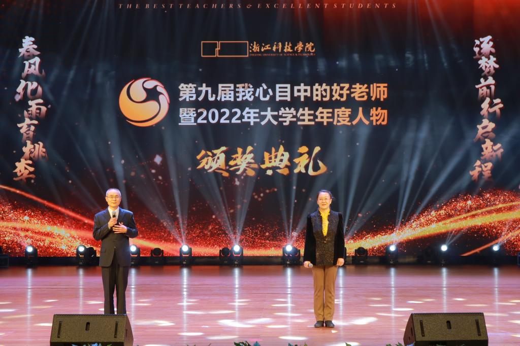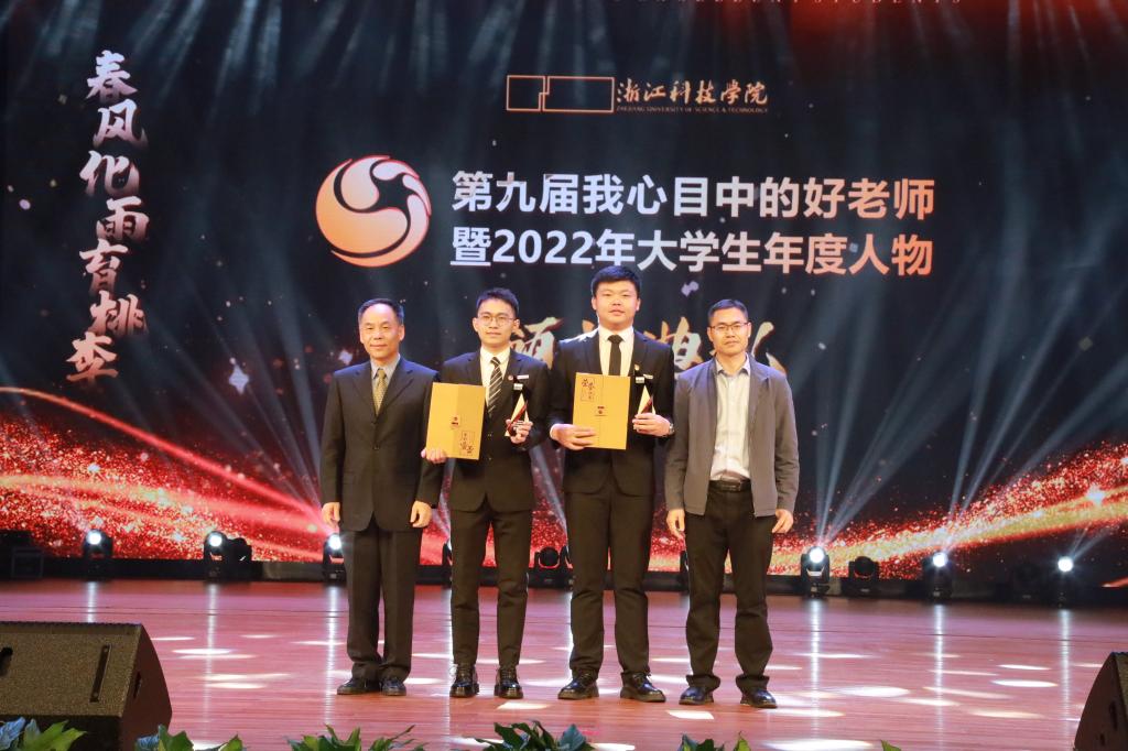 4月12日晚,第九届“我心目中的好老师”暨2022年“大学生年度人物”颁奖典礼举行,校党委书记赵东福、校长陈建孟等校党政班子成员出席颁奖典礼。学院教师李於洪获评“我心目中的好老师”,学院本科生竺颖龙获评2022年”大学生的年度人物“,第七届”我心目中的好老师”邵雷、优秀校友俞佳辉为获奖者颁奖。