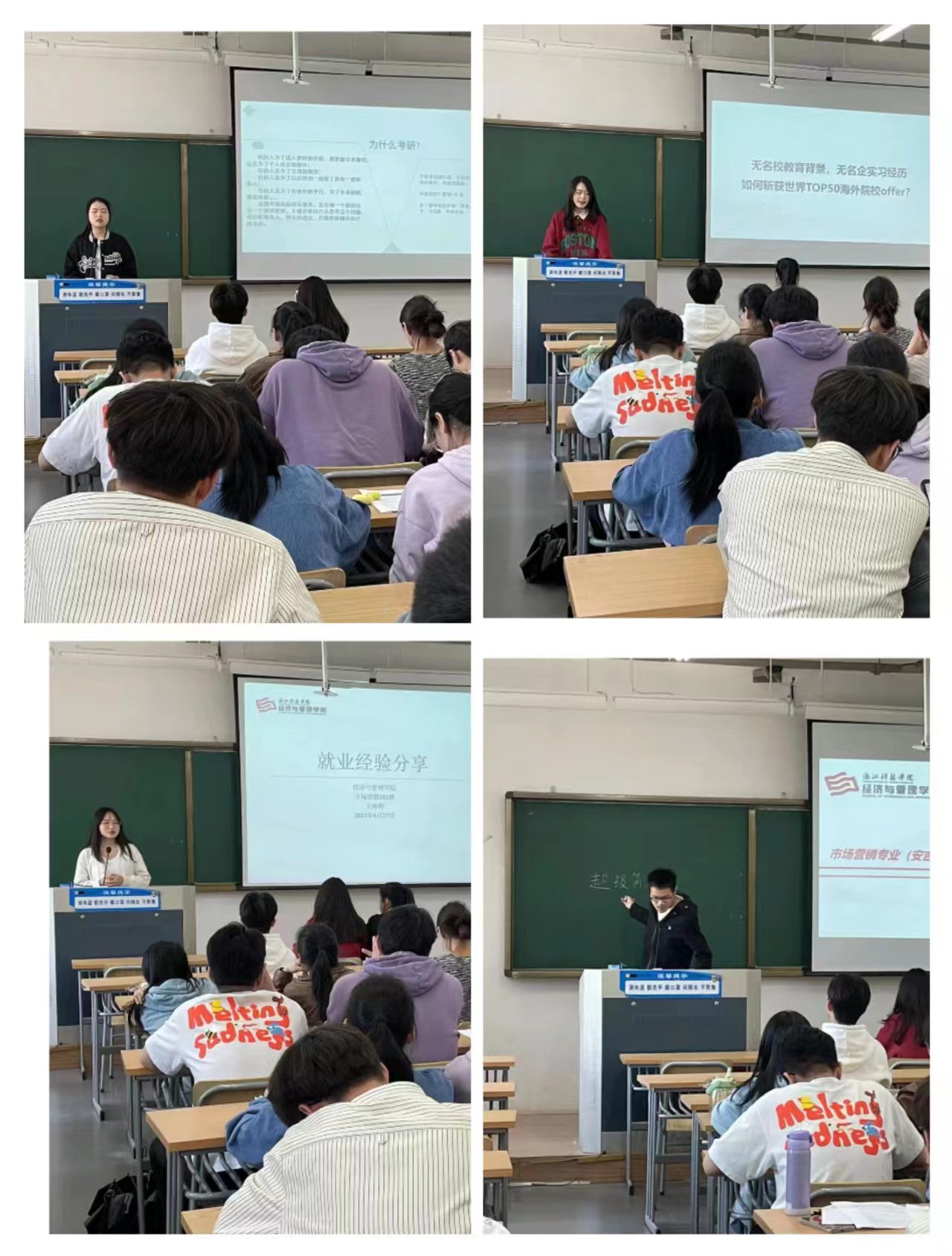 据悉,经管学院在本学期针对大二大三学生已组织升学交流会10余场,考研、出国(境)留学、考公考编、就业等方向的“学长学姐”传承分享受到了学弟学妹的欢迎,提升了升学服务的针对性和实效性。