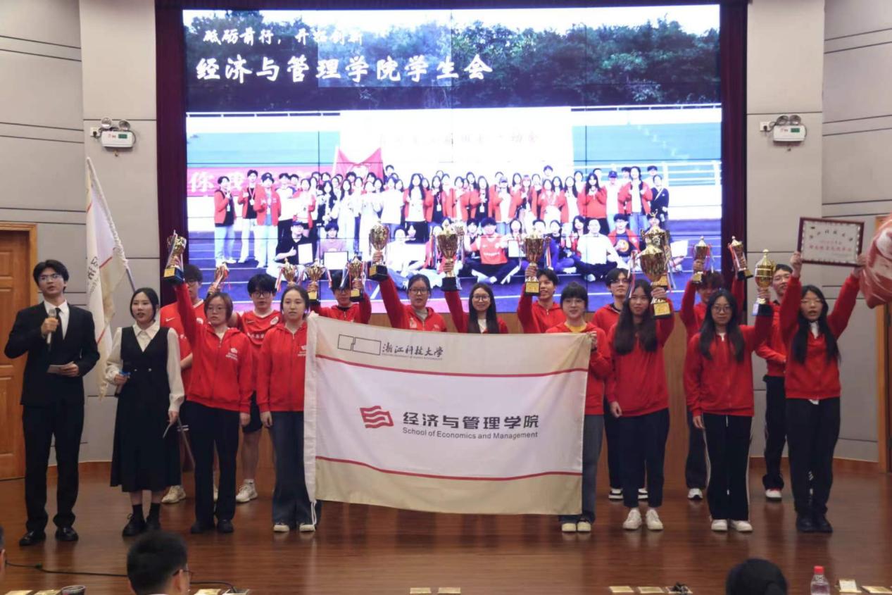 参与此次优秀学院学生会评比现场展示环节的有12个二级学院。通过5分钟的PPT汇报,展示各自学生会的年度总结和亮点工作。经管学院以“携手共进”为主题回顾了学院学生会一年来的亮点工作和特色做法。以“筑梦前行”、“实干笃行”、“星火燎原”、“变革篇章”、“砥砺前行”五个篇章,详细梳理并呈现了其在过去一年中的卓越成就与不懈努力。经过激烈的角逐,学院学生会凭借其出色的表现,最终荣获2023-2024学年浙江科技大学第十届优秀学院学生会的称号。