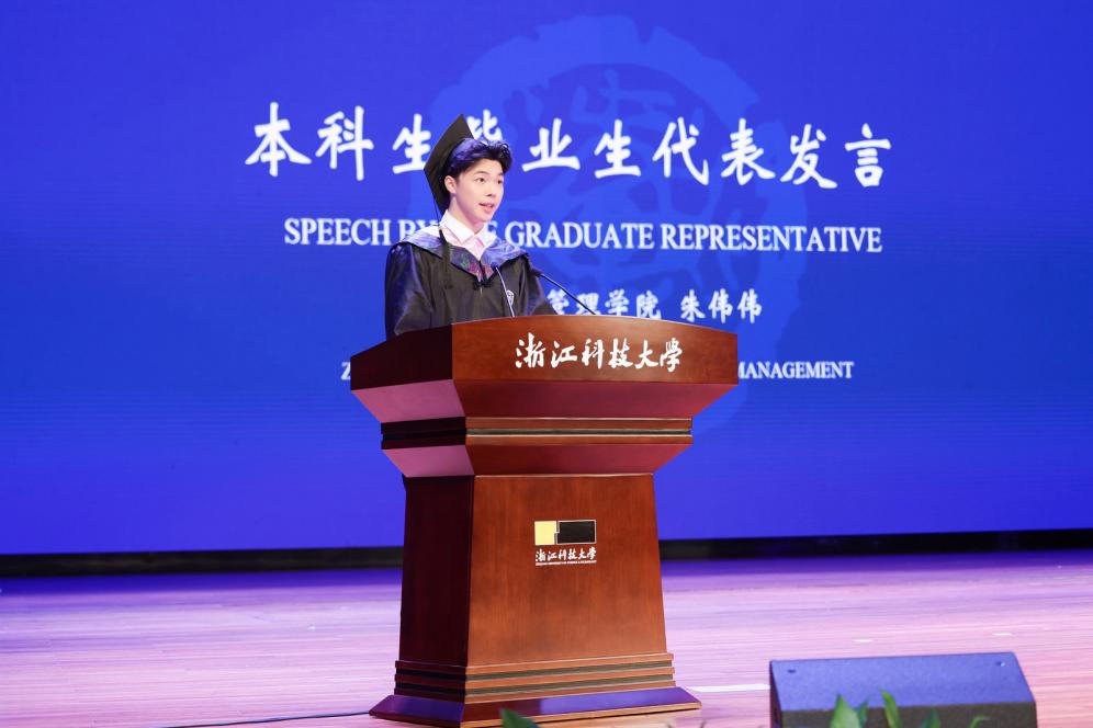 6月24日,我校2024届本科生毕业典礼及学位授予仪式在学生活动中心举行。在典礼上,校长陈建孟为卓越学子获得者颁发证书。该奖项是我校设立的学生最高层次奖学金,评选分本科生组和研究生组,今年,学院本科生2020级财务管理专业朱伟伟和研究生2021级应用统计专业万丰华获此殊荣,其中研究生为我院首次获得。